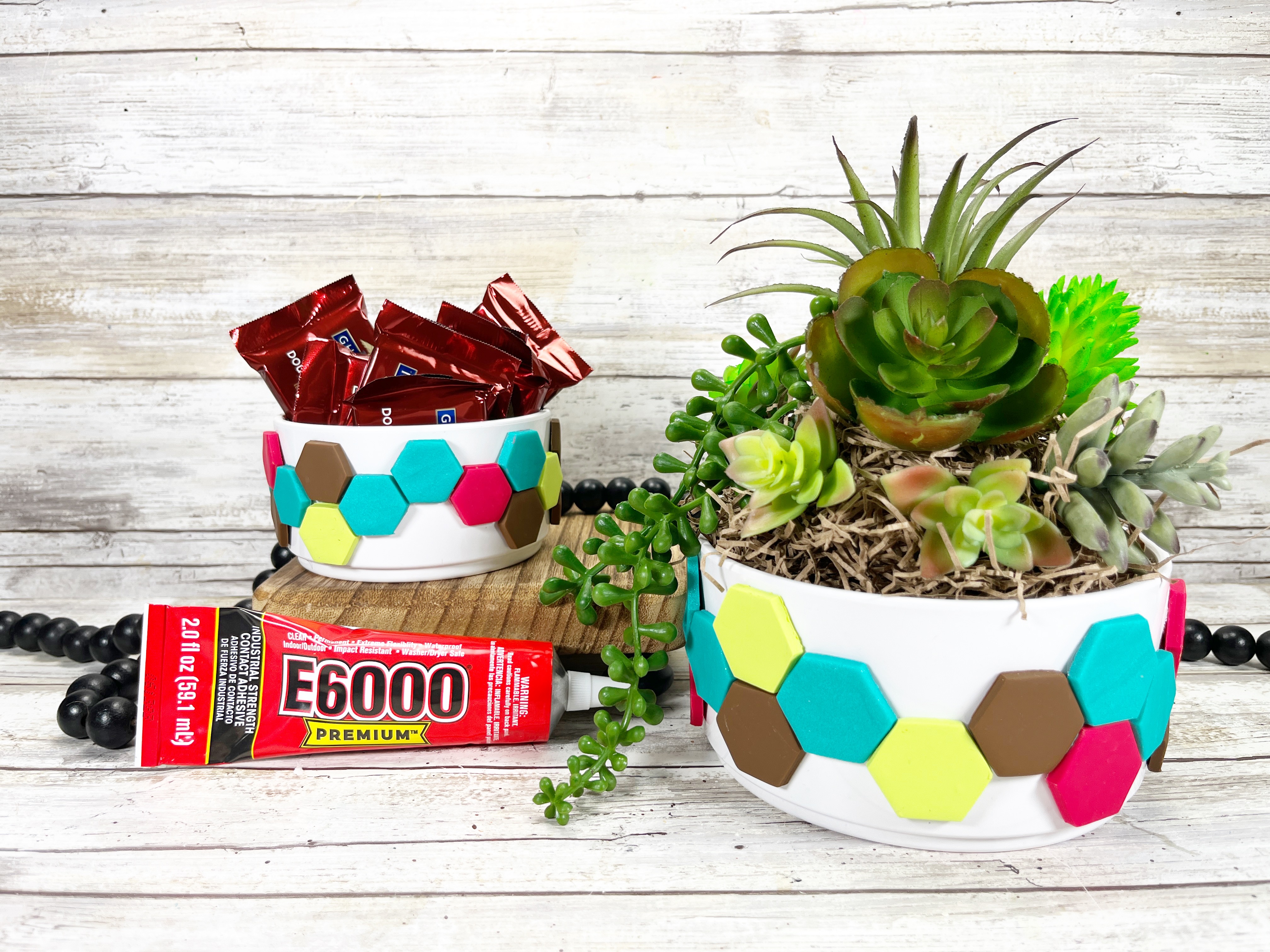 Learn how to make plain containers look high-end with this Polymer Clay Embellished Home Decor tutorial. The secret is E6000 PREMIUM Adhesive which bonds all types of plastics to almost any other surface. Create custom containers with a personalized selection of polymer clay colors and shapes to make a one-of-a-kind piece of home decor or the perfect gift…