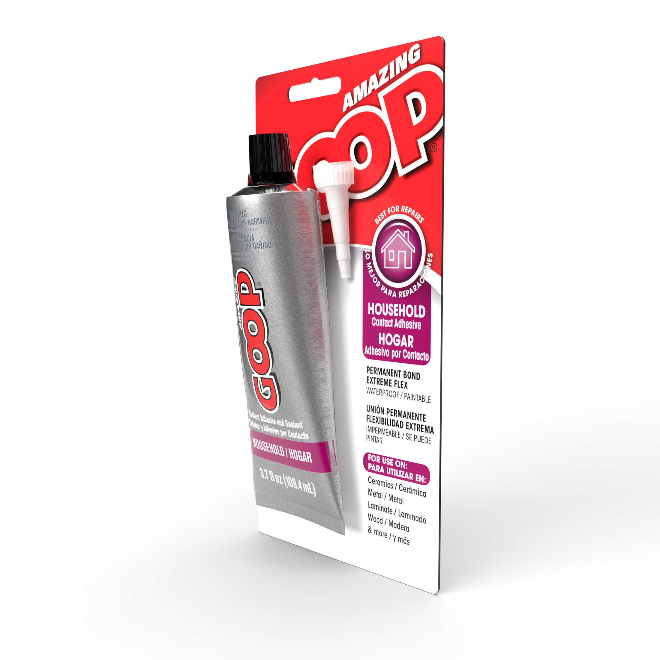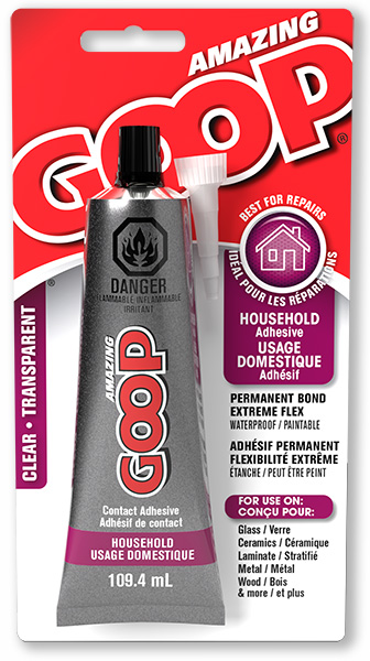 Amazing GOOP Household is the only adhesive you’ll need for home repairs because it repairs, seals and sticks to virtually anything. Its strength is superior to any other brand out there. Use on everything from glass to wood to vinyl to brick!